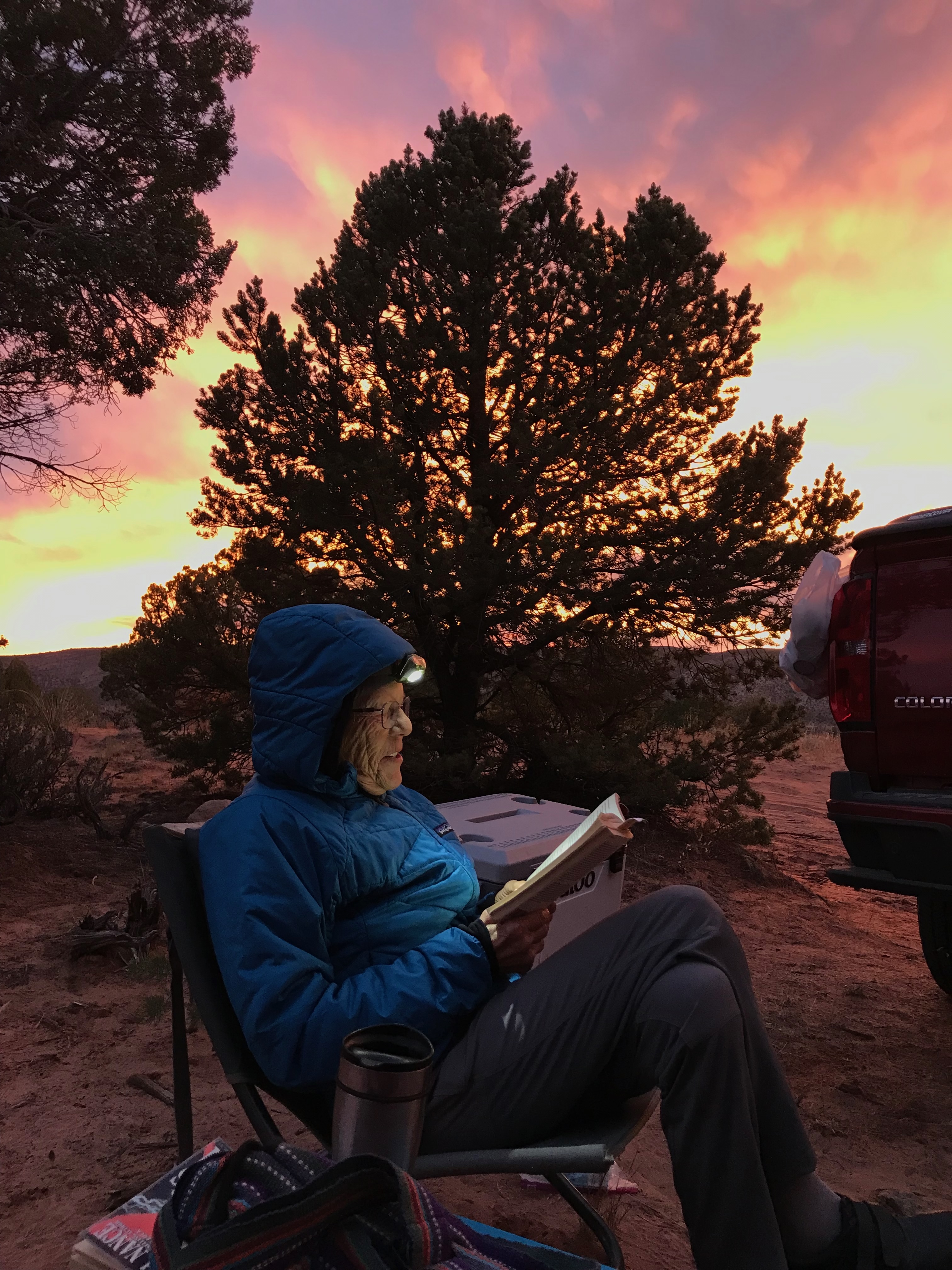 For 40 years, Betty and Barry lived as true Nomads of the American West. Together they hiked, camped, and backpacked through the canyons and mountains of the Southwest and beyond. Few people have explored those desert labyrinths — slot canyons, mesas, and stone cathedrals — as extensively as they did. Even in her later years, when she stayed closer to camp, she continued to live immersed in nature’s rhythms. Just two months before her passing, she was still camping out of the back of their truck, living the way she loved most.